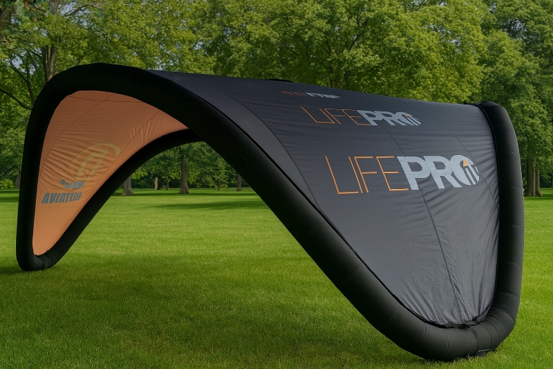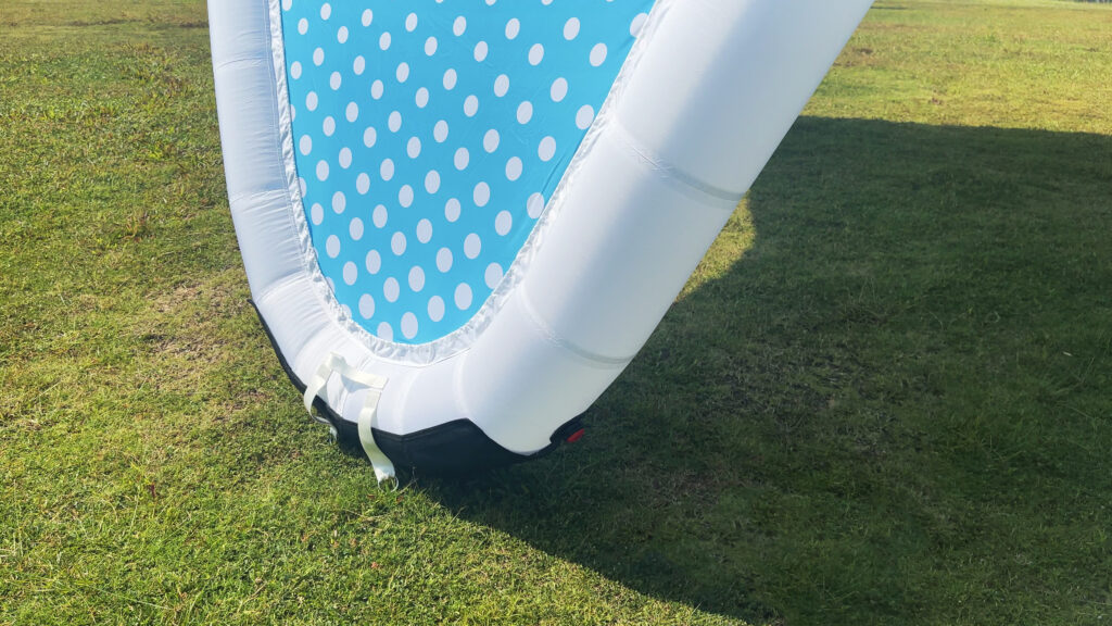 With just three inflation points, setup takes around 3 minutes. Modular parts like the canopy, inner bladder, and leg covers are replaceable for extended use. Double-sided printing is available for enhanced branding.